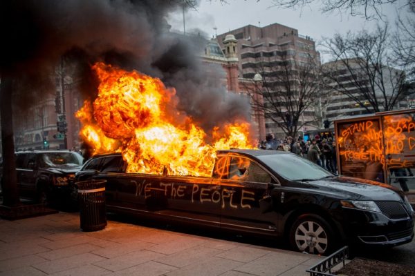 One of the Vehicles Set Ablaze by BLM/Antifa During Riots During President Trump’s Inauguration After the 2016 Election.