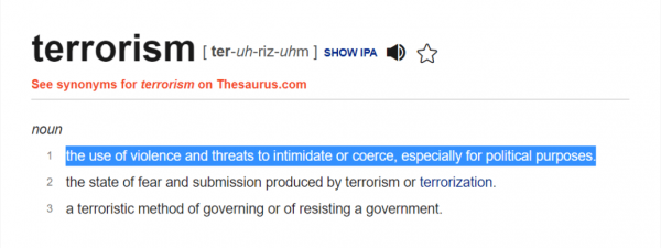 Dictionaries define terrorism as: