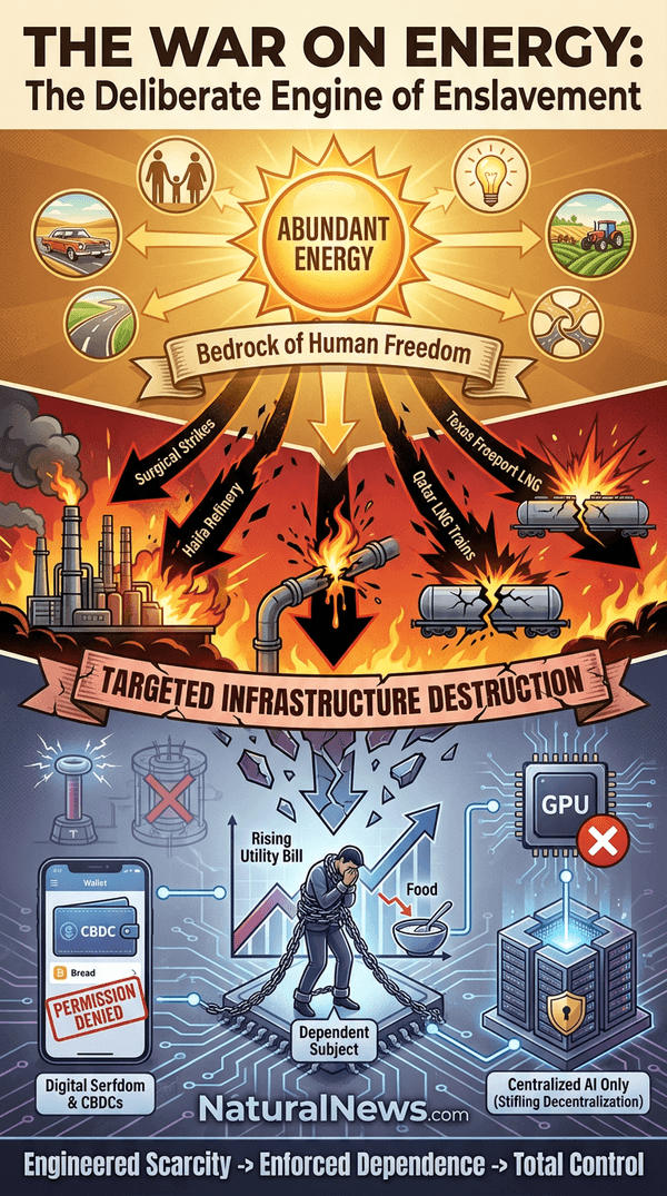 Every time a refinery, a pipeline, or a gas train is targeted, remember this: The goal is not to win a territory. The goal is to sever the lifeline of abundance that enables human freedom. We are witnessing a declared war on the energy that powers our homes, our farms, our industries, and our lives. To understand the coming famine, chaos, and digital serfdom, you must first see through this real lens.